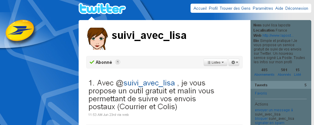 Oui vous avez bien lu le titre ! Un nouveau service viens d’être lancé par Laposte via le compte Twitter @suivi_avec_lisa.