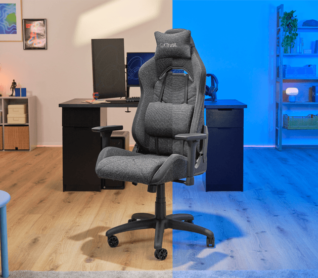 Contrairement à certains fauteuils gaming aux lignes agressives et aux couleurs criardes, la Trust GXT 723 adopte un design bien plus sobre, avec un revêtement tissu gris foncé particulièrement réussi. Le rendu est à la fois moderne et passe-partout.