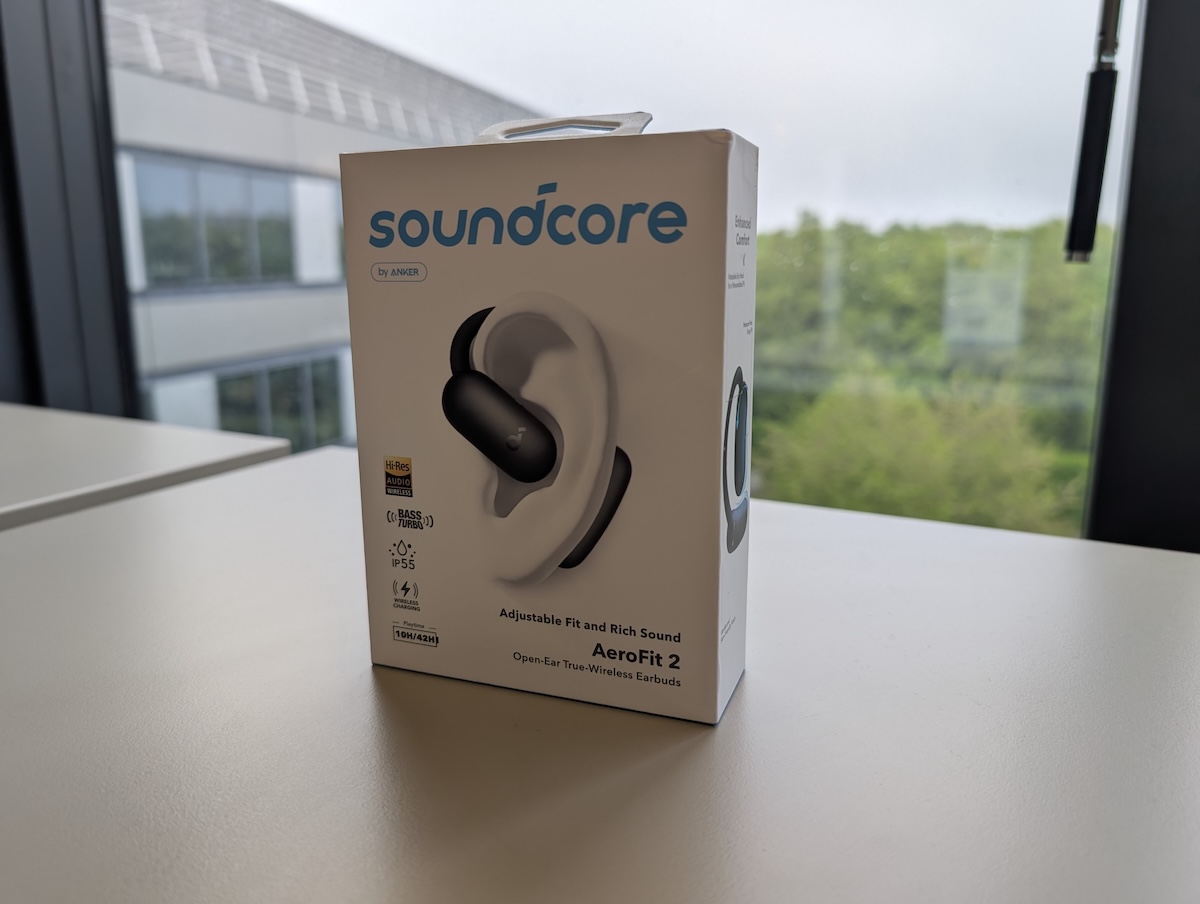 Le déballage des AeroFit 2 est déjà une première impression positive. L’emballage, minimaliste et moderne, met en avant le design open-ear qui les caractérise. Ils sont disponibles en trois couleurs : Midnight (noir), Champagne Mist (blanc) et Vert – un choix pour tous les goûts ! Pour cet essai, nous avons reçu la version noire.