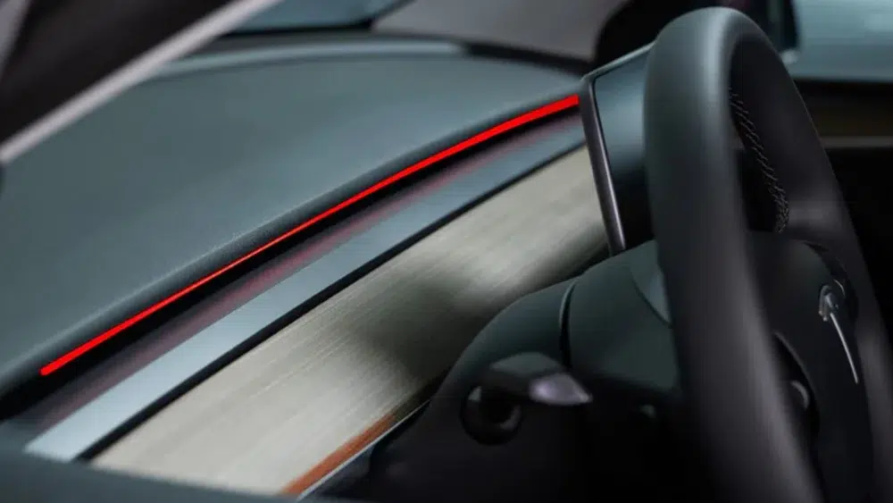 La vraie difficulté arrive au moment du positionnement final. J’ai voulu jouer au héros en faisant tout seul, résultat : mon alignement n’est pas parfait des deux côtés. Rien de dramatique, mais quand on est perfectionniste, ce genre de détail peut agacer. Si c’était à refaire, j’appellerais un pote pour tenir le bandeau pendant que je le colle progressivement. La bonne nouvelle : contrairement à ce que je craignais, je n’ai pas eu besoin de couper le bandeau côté conducteur sur mon Model Y, il s’est parfaitement ajusté à la longueur de la planche de bord.