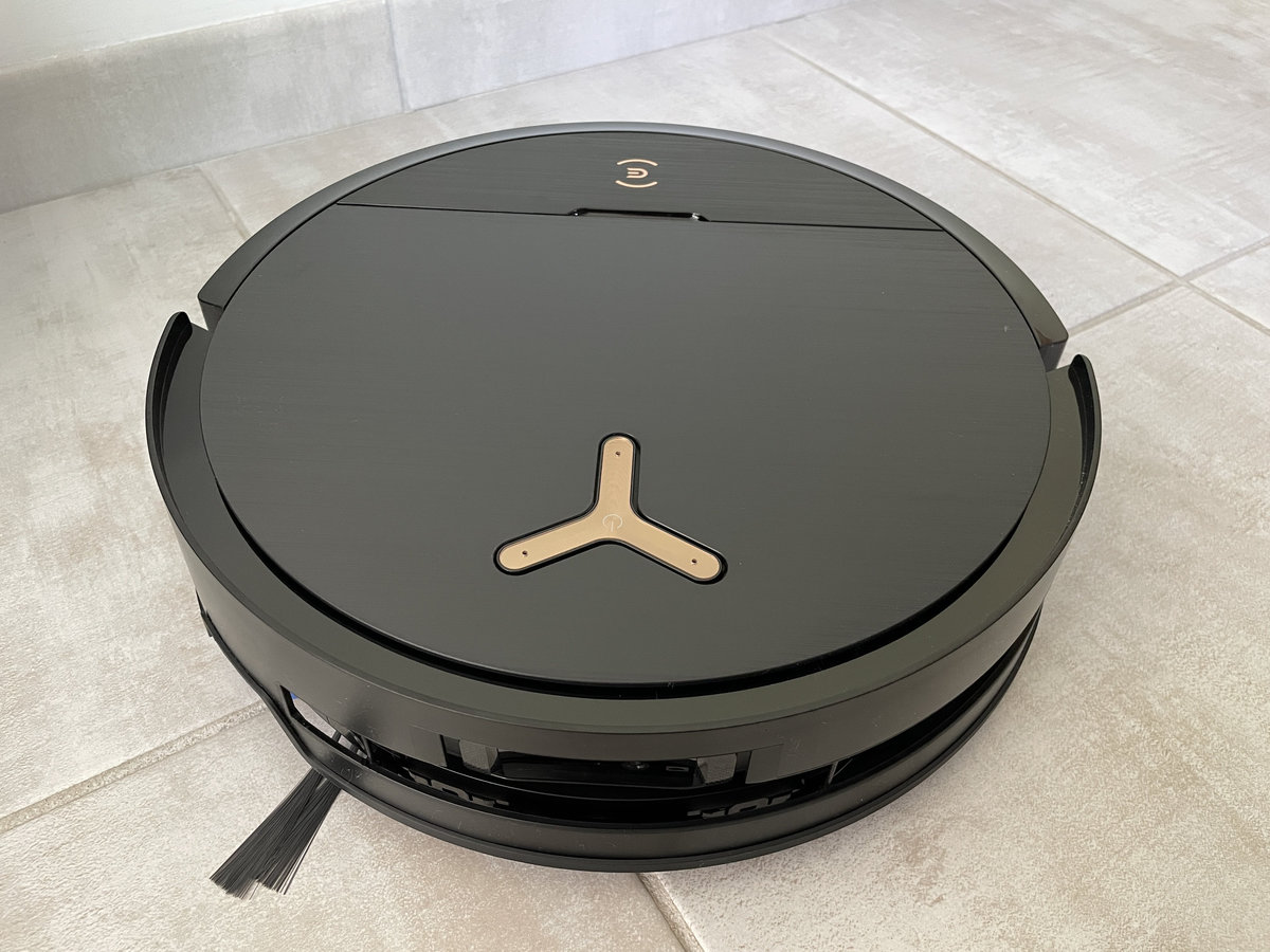 Dès l’ouverture de la boîte, l’impression est premium. Le robot et sa station Omni respirent la qualité, avec des finitions soignées et un design plutôt élégant (les touches « or rose » sur fond sombre, on aime ou on n’aime pas, mais ça a le mérite d’être chic). La station, bien que volumineuse, est pensée pour s’intégrer : elle cache les réservoirs d’eau et le sac à poussière, ce qui est un bon point esthétique.