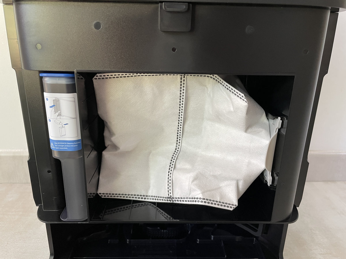 Concrètement, à part remplir le réservoir d’eau propre, vider celui d’eau sale, et changer le sac à poussière de temps en temps, l’entretien est minime. Un grand confort ! Un petit bémol, les réservoirs d’eau (et celui de la solution nettoyante) sont un peu plus petits que sur le modèle X8, ce qui implique des remplissages/vidages un peu plus fréquents. Mais bon, ce n’est pas bien grave.