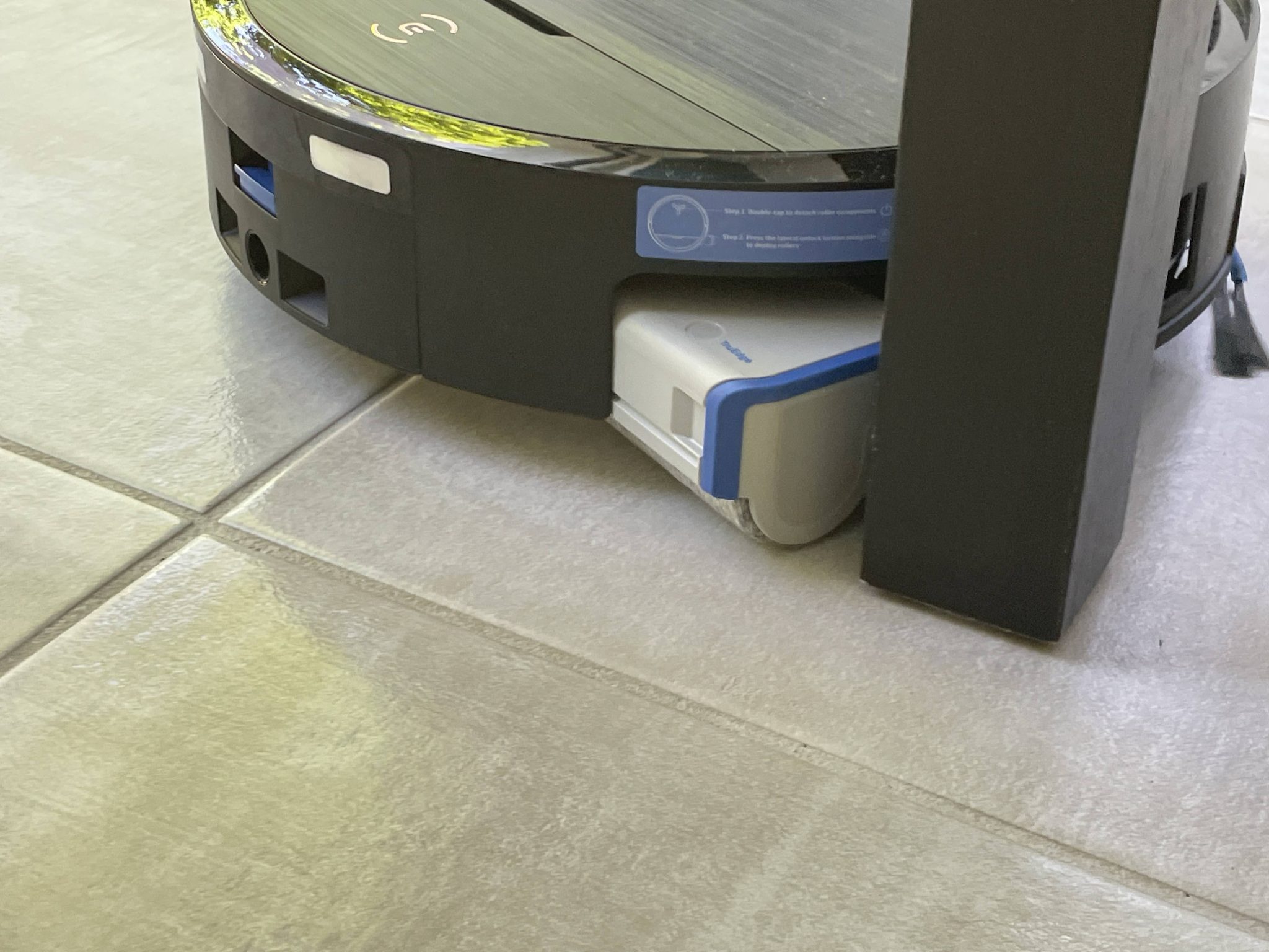 Cependant, tout n’est pas parfait. Il a une relation compliquée avec les pieds de ma chaise de bureau à roulettes : il a tendance à s’y frotter un peu trop longtemps avant de passer à autre chose. De même, un jouet des enfants particulièrement plat et motorisé a réussi à le piéger une fois en s’emmêlant dans ses brosses alors que j’étais absent. Un petit rappel qu’il vaut mieux sécuriser les « pièges » potentiels.