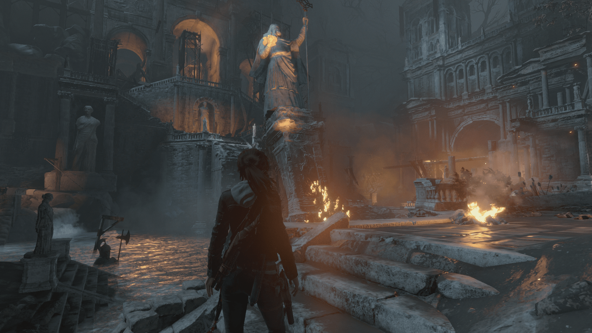 Lara dispose désormais de toutes nouvelles compétences et de nouveaux outils. Dès le début du jeu elle sait faire beaucoup de chose et a gardé ses compétences acquises lors du Tomb Raider de 2013. Et ça c’est une très bonne chose. Concernant les nouvelles compétences, elle pourra se servir d’un genre de grappin, planter des flèches dans certaines surfaces pour les escalader, se jeter sur des ennemis pour les assassiner au couteau façon Assassin’s Creed et même tirer jusqu’à trois flèches en même temps pour tuer autant d’ennemis. Pour arriver à cela il faudra choisir parmi les compétences que Lara peut faire évoluer au fil de l’aventure.