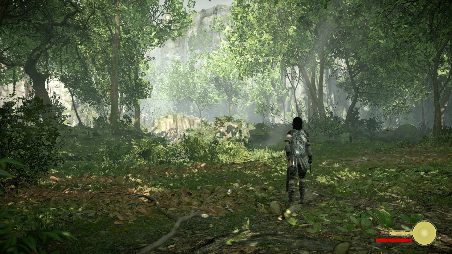 La refonte graphique de Shadow of the Colossus fait du bien. L’extrême beauté du titre saute aux yeux dès les premières minutes de jeu. Les paysages sont parfois vraiment surprenant, les panoramas sont magnifiques et chaque zone a sa propre identité. Le parcours pour atteindre les colosses est souvent un vrai régal pour les yeux. On se balade, sans musique, sans rencontrer personne, juste à dos de notre cheval pour atteindre l’endroit indiqué par notre mystérieux guide. Les arènes des boss sont aussi particulièrement belles et offrent en plus bien souvent des éléments avec lesquels il faudra interagir pour les vaincre. Malheureusement, et ce n’a rien à voir avec le remake, le jeu est tristement grand et vide. Seul les colosses, quelques rares lézards et oiseaux vivent dans ces terres interdites. Tuer les colosses signifie donc vider ce monde de toutes formes de vie. Éteindre un monde pour sauver une seule vie, est-ce vraiment juste ? L’histoire de ce jeu n’est pas très claire, et même en ayant terminé le jeu et en ayant reçu la clé de l’intrigue, pouvons nous vraiment trouver le sens de cette quête.