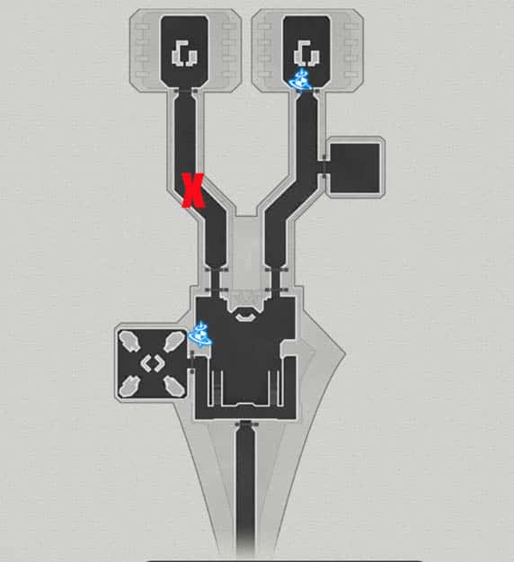 Dans les zones inférieures de la carte, à côté d’un puzzle nécessaire pour ouvrir une autre porte.