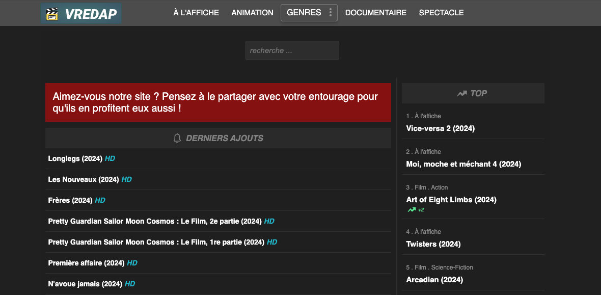 Bien que Vredap ait de nombreuses qualités, il reste un site illégal. Actuellement, ce site de streaming n’a pas encore atteint la notoriété de plateformes comme Wawacity, Streamonsport, ou Darkiworld. Ces sites, très populaires, sont constamment sous la surveillance des autorités et doivent fréquemment changer d’adresse pour échapper à la fermeture.